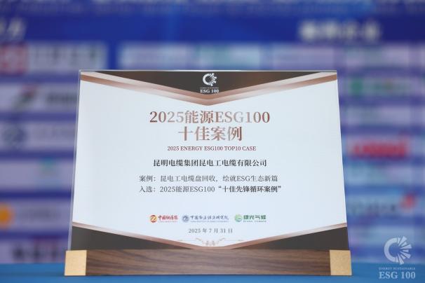 7月31日,第二屆中國ESG100價值大會——2025能源與關鍵產業高層論壇暨ESG100案例發布大會在北京舉辦,昆電工成功入選2025能源ESG100 “十佳先鋒循環案例”與“十佳典范影片”,是線纜行業唯一連續兩年蟬聯上榜的企業,其ESG建設成果再獲權威認可。